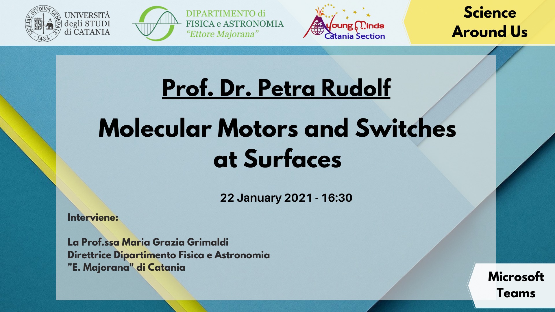 Venerdì 22 gennaio 2021, con inizio alle ore 16:30, la Prof.ssa Petra Rudolf (Zernike Institute for Advanced Materials, University of Groningen, The Netherlands; President of the European Physical Society) terrà un seminario dal titolo Molecular motors and switches at surfaces.