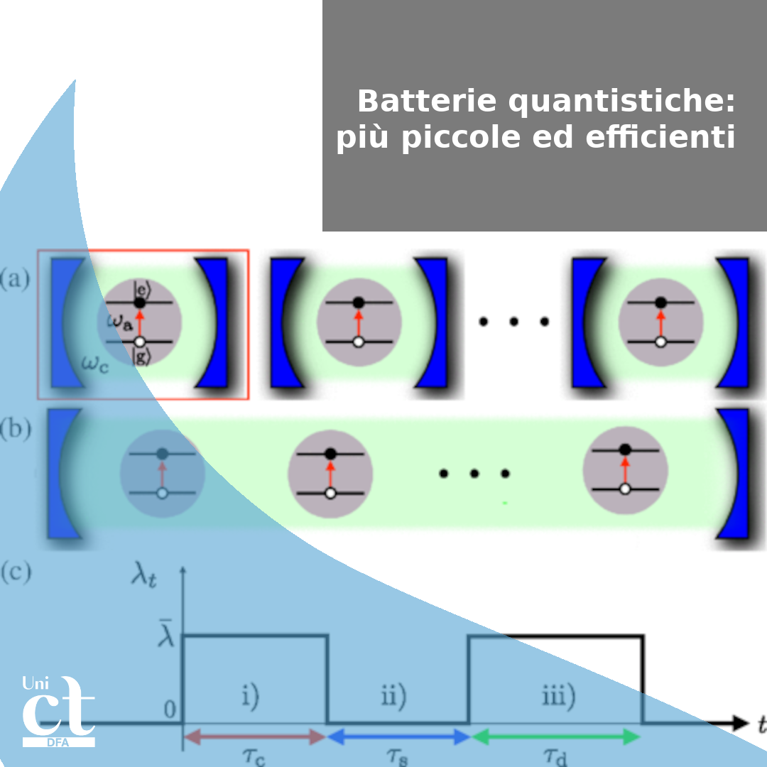 Le batterie quantistiche (QB) sono dispositivi miniaturizzati che immagazzinano e rilasciano energia in modo efficiente utilizzando funzionalità non classiche. Le QB hanno attirato un notevole interesse nel campo delle tecnologie quantistiche e potrebbero cambiare il modo in cui manipoliamo l'energia. Le indagini teoriche sono state sviluppate dalla teoria dell'informazione quantistica verso proposte sperimentali. Ora, c'è bisogno di nuovi sforzi teorici per considerare le caratteristiche rilevanti sperimentalmente e dipendenti dal campione. Questo progetto si concentra su tre argomenti principali: studio dell'impatto delle caratteristiche dipendenti dal campione sulle prestazioni del QB, ingegnerizzazione delle correlazioni e dell’accoppiamento luce-materia per QB ad alte prestazioni e ottimizzazione delle prestazioni per il trasferimento di energia.