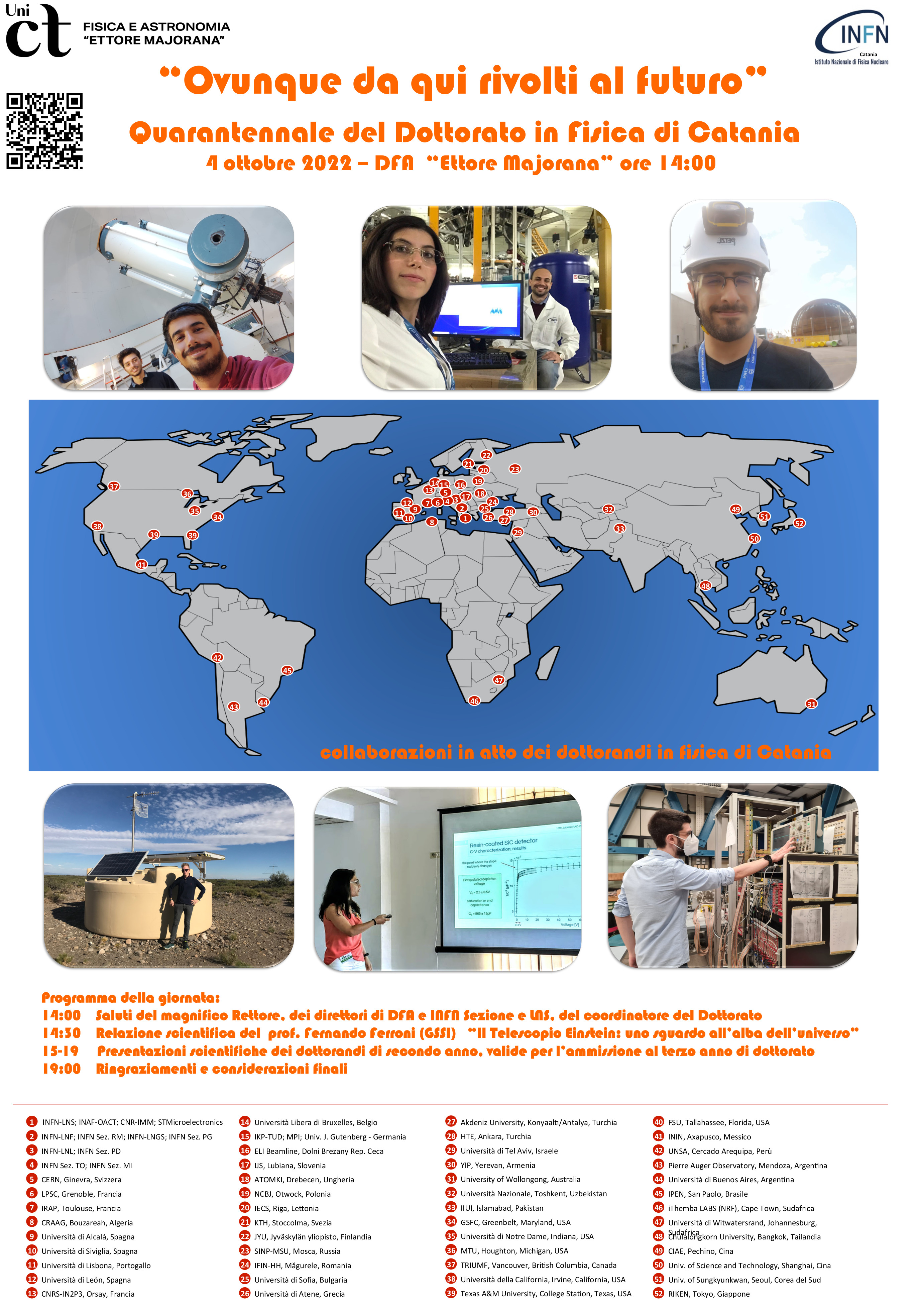 Martedì 4 ottobre 2022, con inizio alle ore 14:00, presso la nuova Sala Conferenze del DFA (pianterreno, ex Sala Grid), si svolgerà un Evento pubblico celebrativo del 40° anniversario dell'istituzione del Dottorato di ricerca in Fisica (1982).
