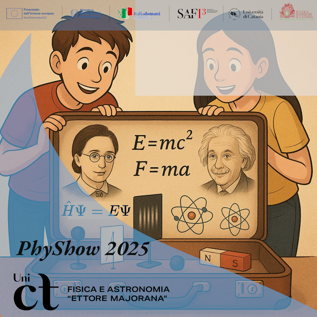Dal 15 al 19 dicembre 2025, presso i locali del DFA, nel campus universitario della Cittadella a Catania, si svolgerà PhyShow: Physics Showcase 2025, una winter school rivolta a Studentesse e Studenti del 4° e 5° anno della Scuola Superiore di 2° grado affascinate/i dalla Fisica.