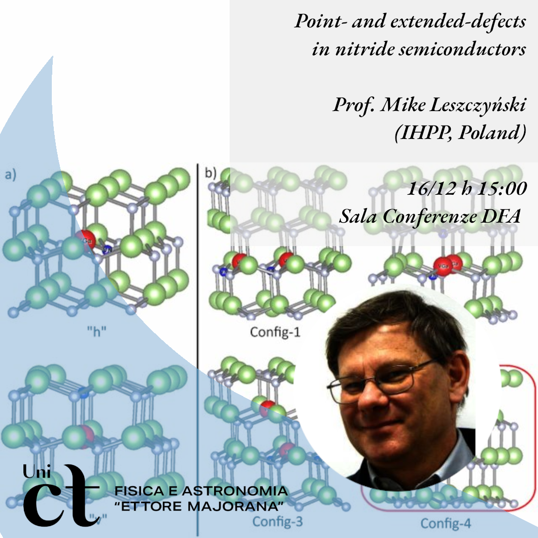 Giorno 16 dicembre 2025, con inizio alle ore 15:00, presso la Sala Conferenze del DFA, il Prof. Mike Leszczynski (IHPP, Poland) terrà un seminario dal titolo Point- and extended-defects in nitride semiconductors.
